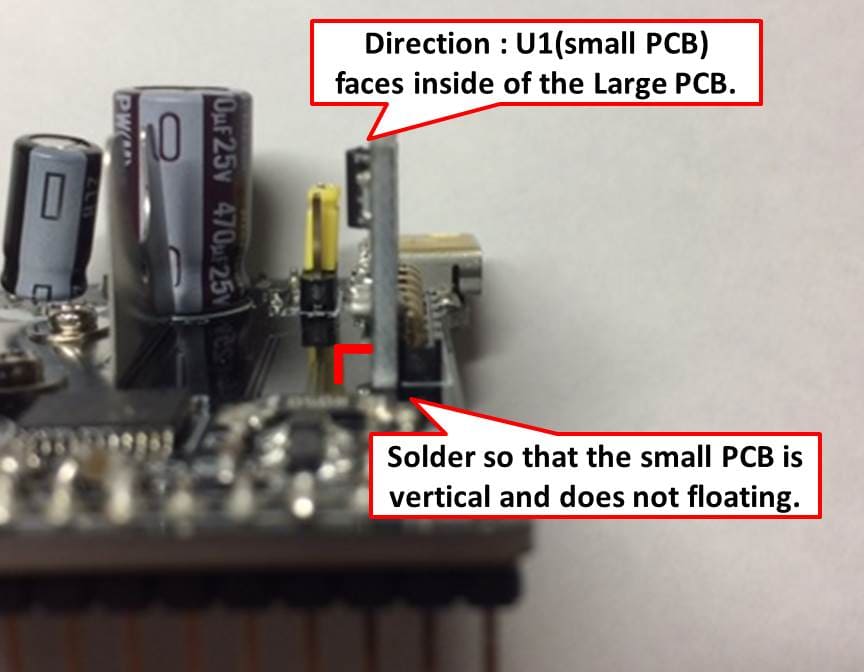 Please solder panelized 2 PCBs vertically after cutting them.