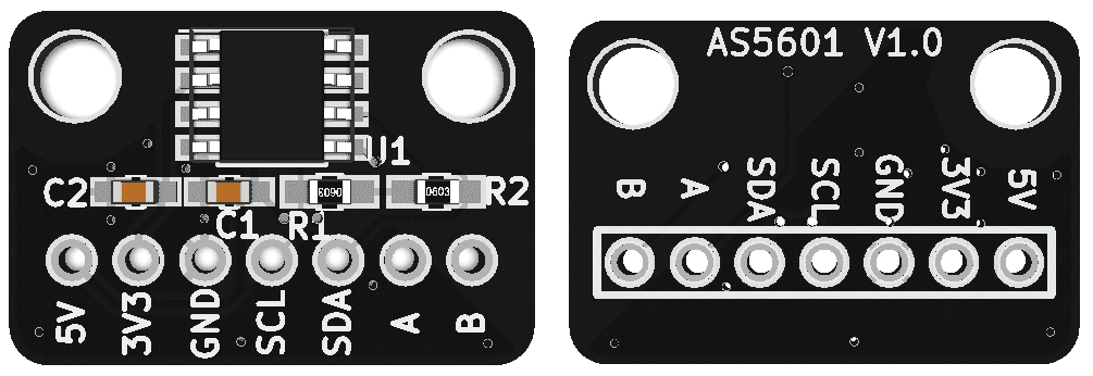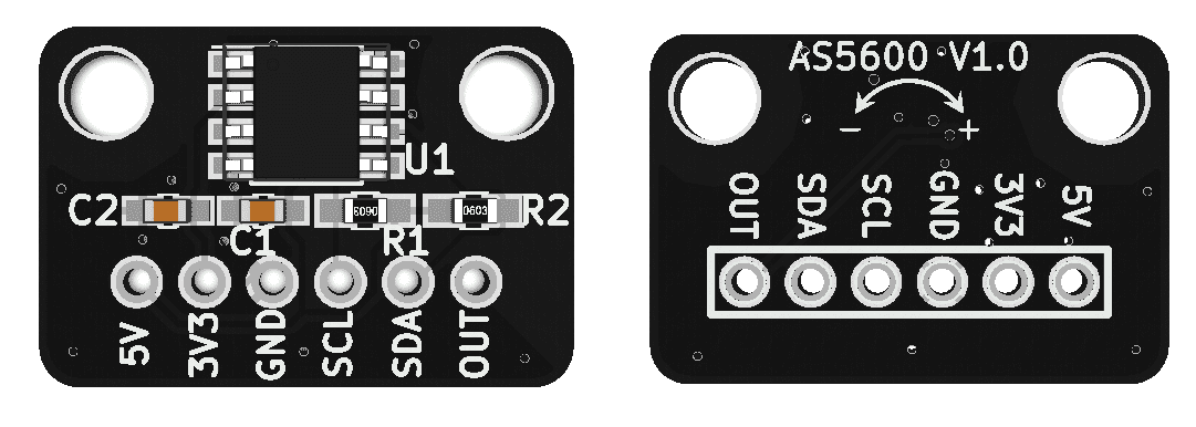 AS5600/AS5601はSOIC-8の表面実装用のパッケージのため、手軽にデバイスを使うことが難しいと思います。 そこで、AS5600・AS5601のピンを2.54mmピッチに変換する基板を作りました。