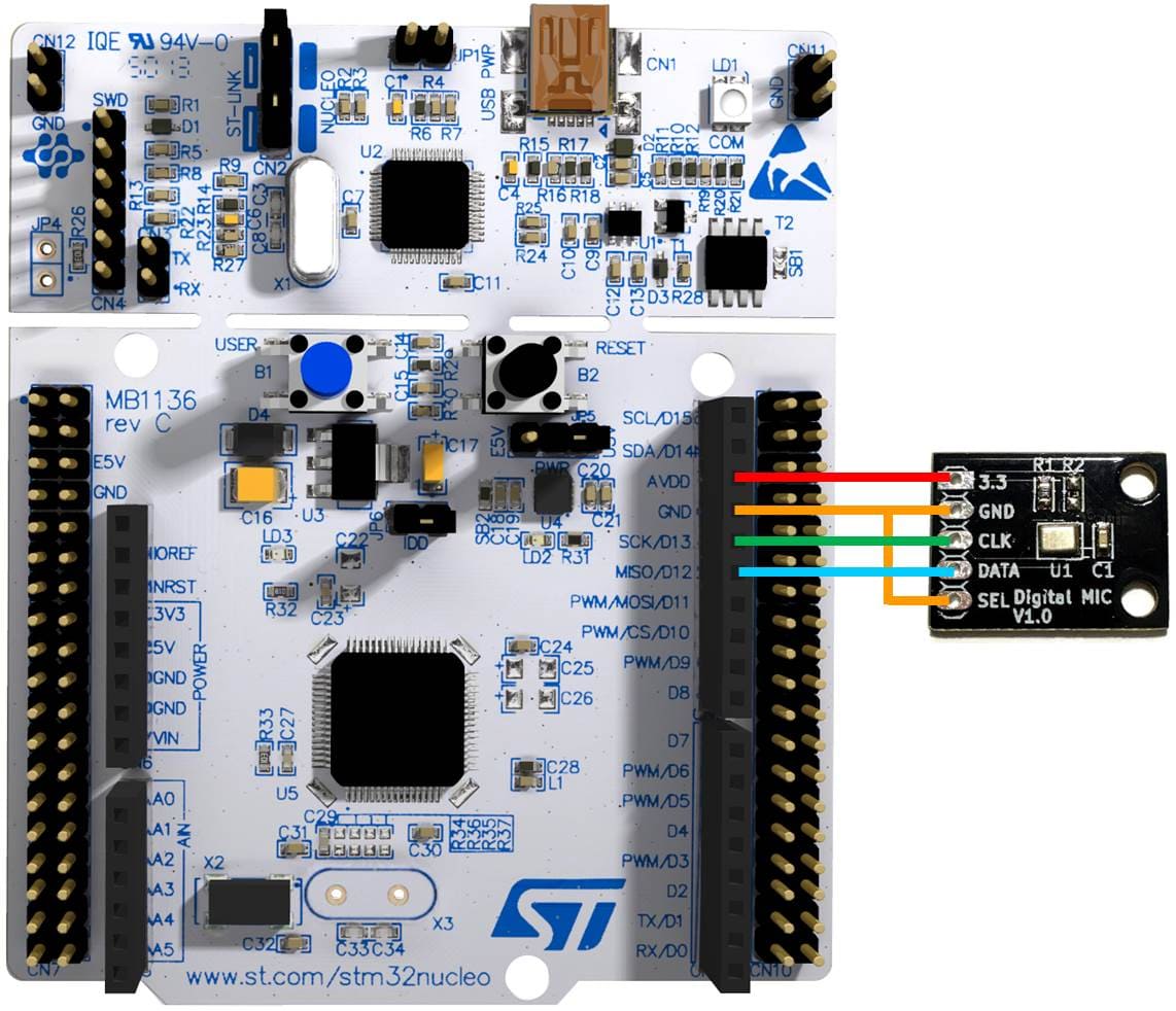 今回は前回の記事で使用した100~80kHzの帯域を持つデジタルマイクKnowles社のSPH0641LU4H-1が搭載されているブレイクアウトボードとNUCLEO-F411REを使用します。