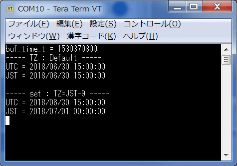 しかし、Unix時間はUTC(協定世界時)の1970/01/01 00:00からの秒数であるため、タイムゾーンが設定されたシステムからUnix時間の情報を受け取り、STM32のタイムゾーンを設定しないままGCCの標準ライブラリ関数<time.h>のlocaltime関数などを使って地方標準時に変換しようとしても、デフォルトのタイムゾーンはUTCとなっているため日本の地方標準時よりも9時間前の時間となってしまします。