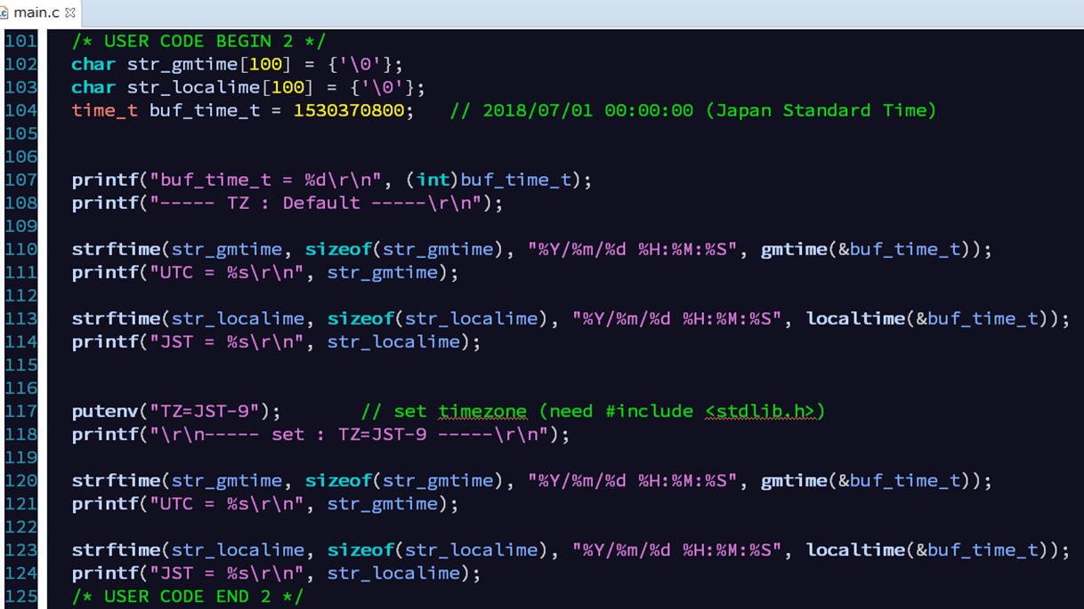 今回はSTM32のGCCの標準ライブラリ関数<time.h>でタイムゾーンを設定する方法を紹介します。